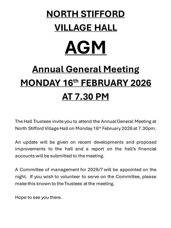 North Stifford Village Hall was built in 1959 following a donation to the village by Colonel Sherwood who lived at Stifford Lodge. The land was donated by Sir Francis Whitmore. It is situated on the Village Green at the heart of the village.